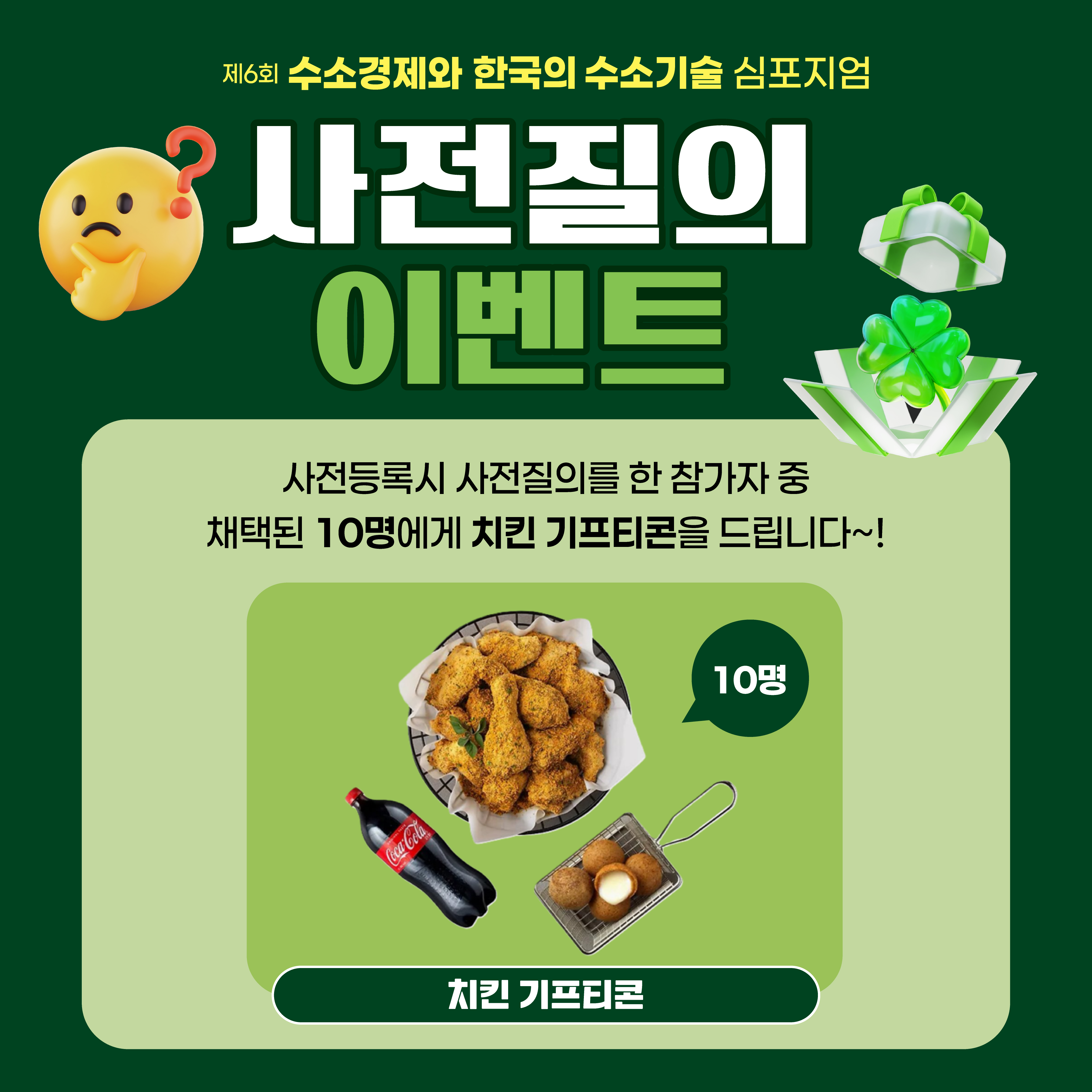 Á¦6ȸ ¼ö¼Ò°æÁ¦¿Í Çѱ¹ÀÇ ¼ö¼Ò±â¼ú ½ÉÆ÷Áö¾ö 💡»çÀüÁúÀÇ À̺¥Æ®💡°¡ ÁøÇàµË´Ï´Ù! »çÀüµî·Ï ½Ã »çÀüÁúÀǸ¦ ÇÑ Âü°¡ÀÚ Áß Ã¤ÅÃµÈ 10¸í¿¡°Ô ġŲ ±âÇÁƼÄÜ(¸ð¹ÙÀÏ)À» µå¸³´Ï´Ù🍗 ¿¬»çºÐµé¿¡°Ô À¯ÀÍÇÑ Áú¹® ¸¹ÀÌ ºÎʵ右´Ï´Ù~🙌🏻